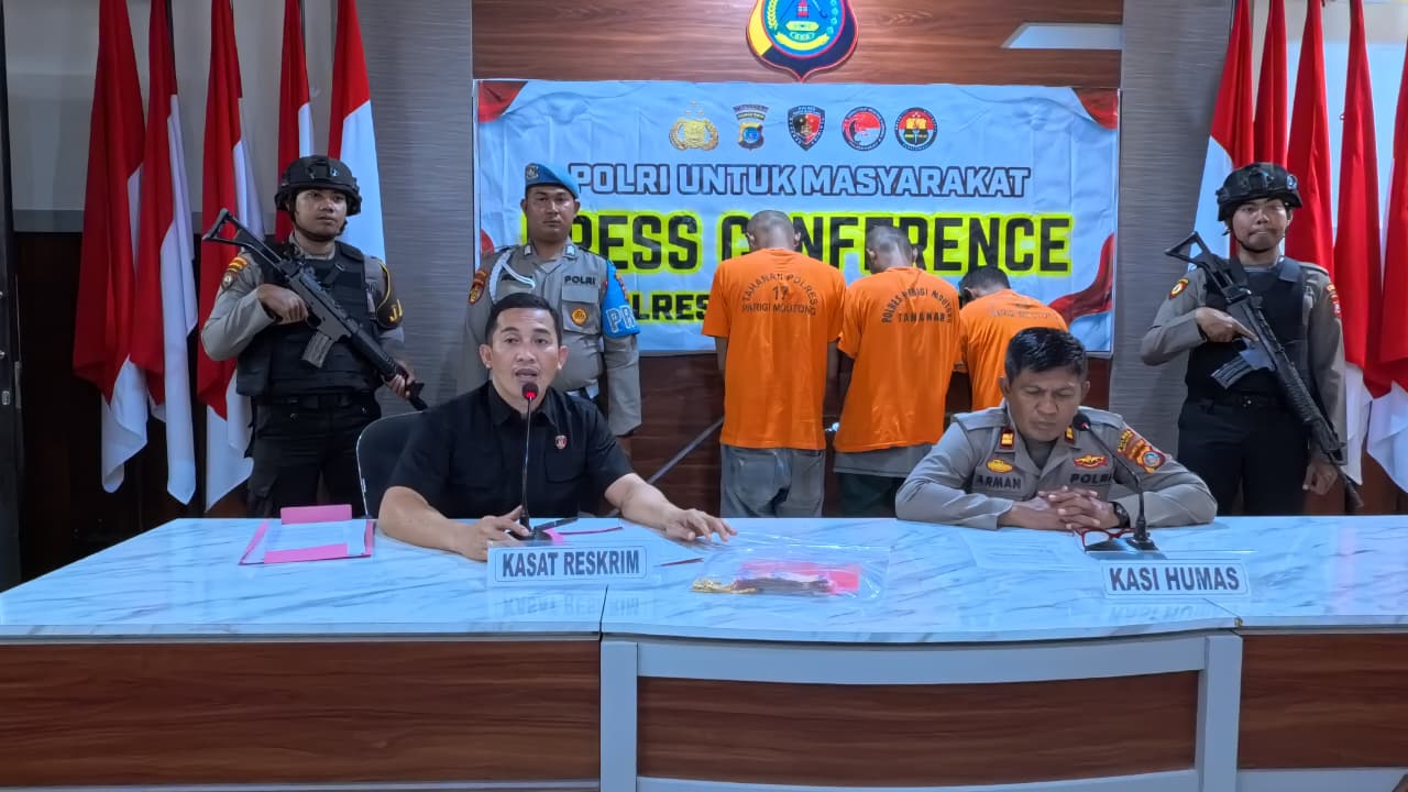 Kasat Reskrim Polres Parigi Moutong, IPTU Agus Salim, S.H., M.AP, menjelaskan bahwa dari hasil penyelidikan, polisi berhasil mengamankan tiga orang tersangka masing-masing berinisial ER (40), warga Dusun Parede, Bambalotmu, Kabupaten Pasangkayu; MU (33), warga Desa Sausu Tambu, Kecamatan Sausu; dan SI (35), warga Desa Malakosa, Kecamatan Balinggi, Kabupaten Parigi Moutong.